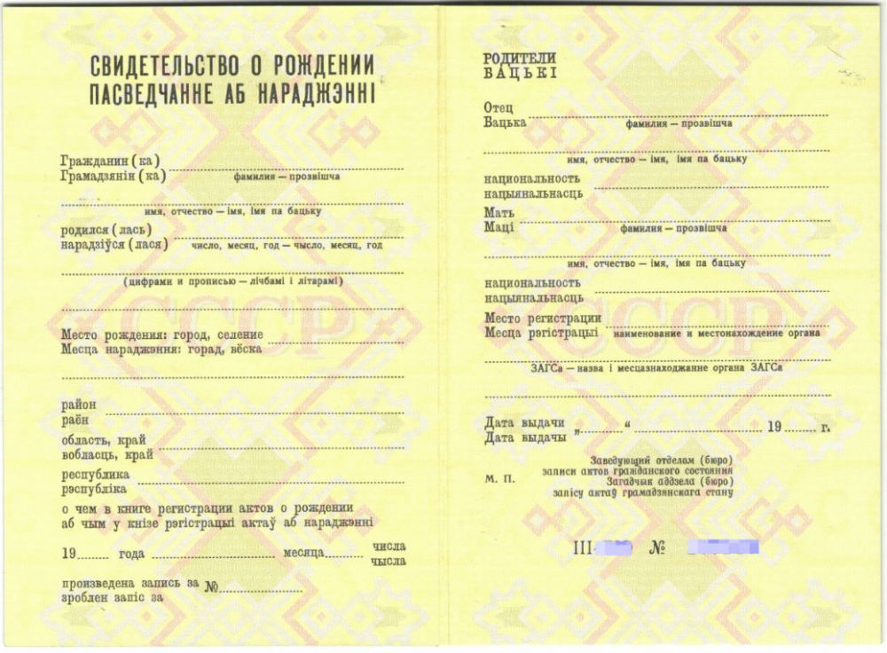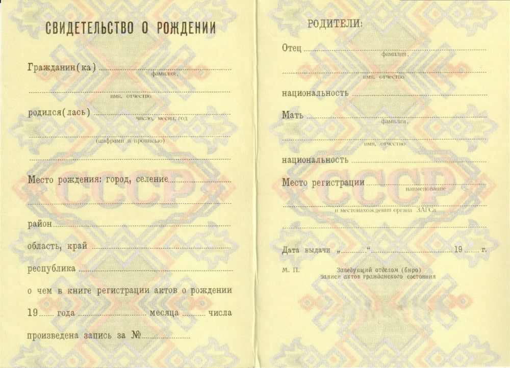 Цена бланка свидетельства о рождении СССР